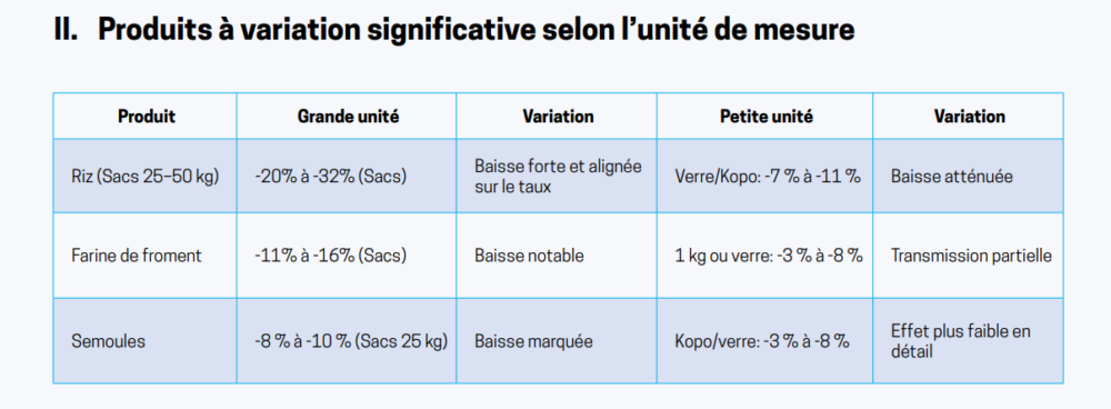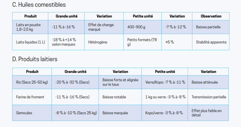 En moyenne, les prix de quarante biens de grande consommation ont reculé d’environ 13 %, ce qui correspond à une transmission réelle de l’effet de change dans un environnement historiquement marqué par des pressions inflationnistes récurrentes, cette inflexion constitue un signal encourageant de réajustement des prix à la baisse.