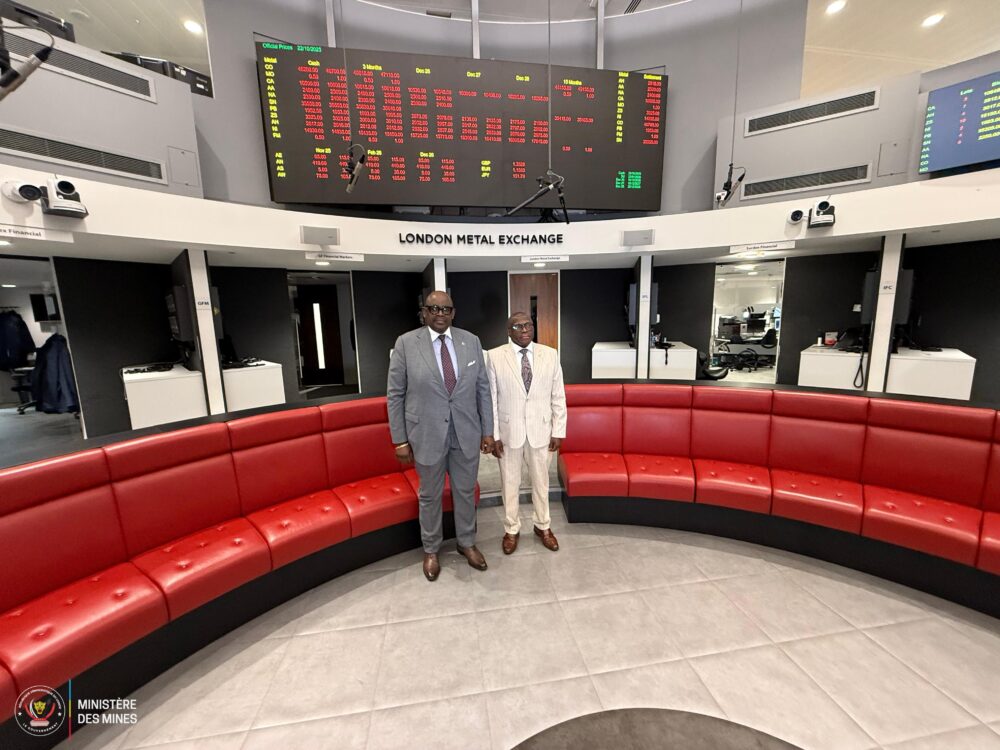 Accompagné de l’Ambassadeur de la RDC au Royaume-Uni, le Ministre a échangé avec les responsables du LME sur les mécanismes de fixation des prix internationaux et sur la possibilité pour les compagnies minières opérant en RDC de s’inscrire à cette plateforme internationale.