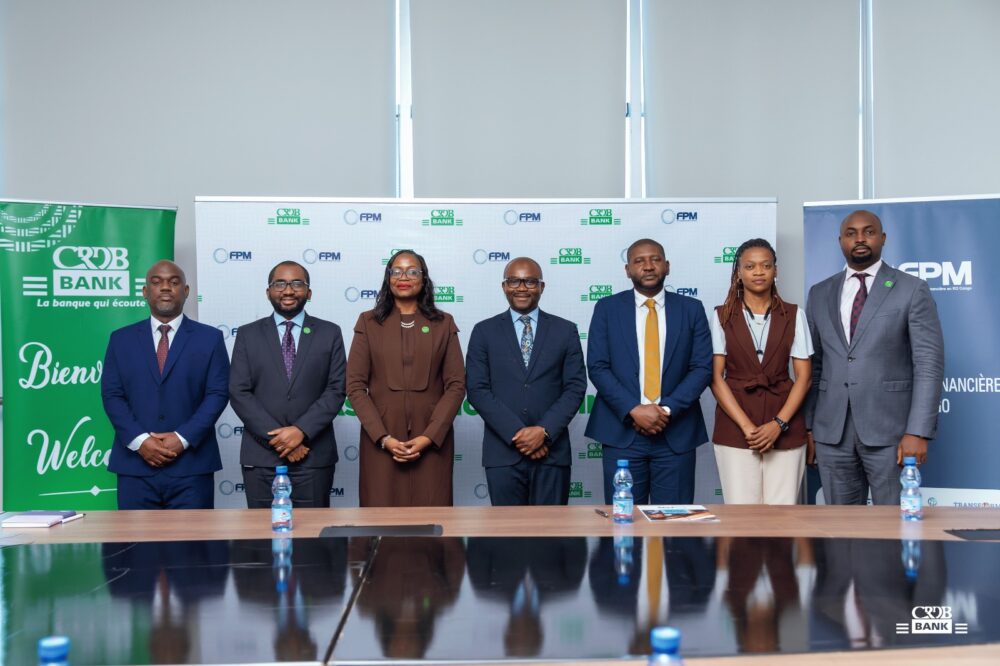 Au centre tenant les signataires du contrat de partenariat, Mme Jessica NYACHIRO MAKOKHA, DG de CRDB Bank DR Congo et M. Patrick NKONGO, DG du FPM ASBLAu centre tenant les signataires du contrat de partenariat, Mme Jessica NYACHIRO MAKOKHA, DG de CRDB Bank DR Congo et M. Patrick NKONGO, DG du FPM ASBL