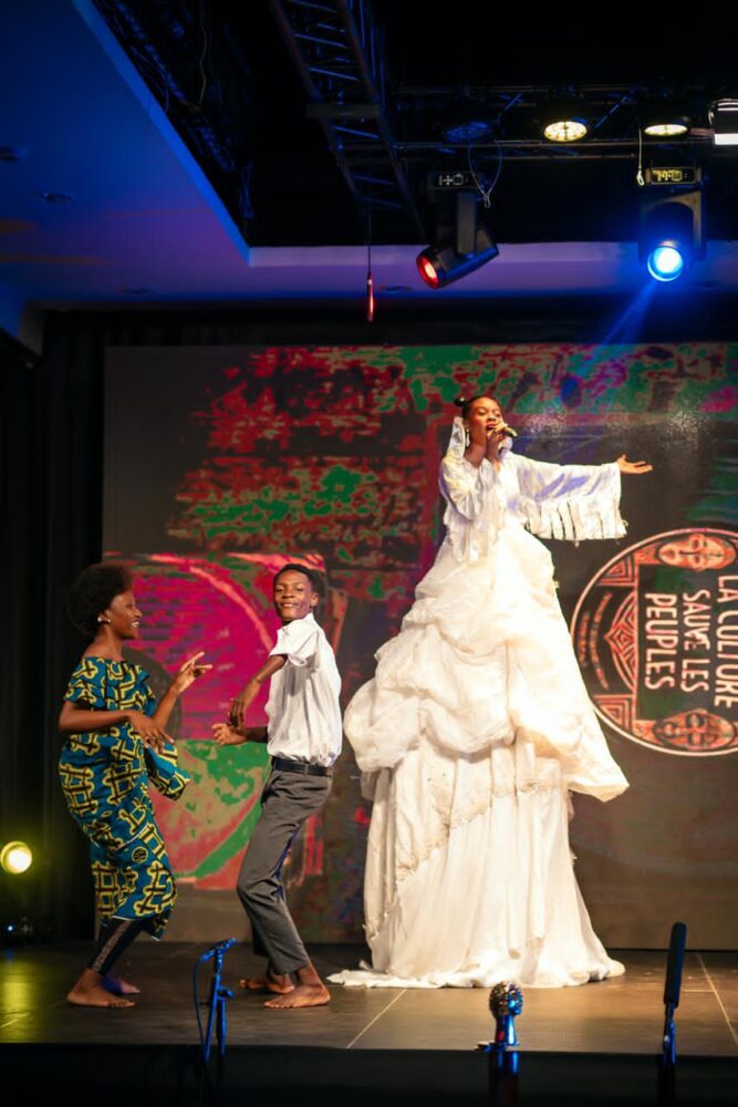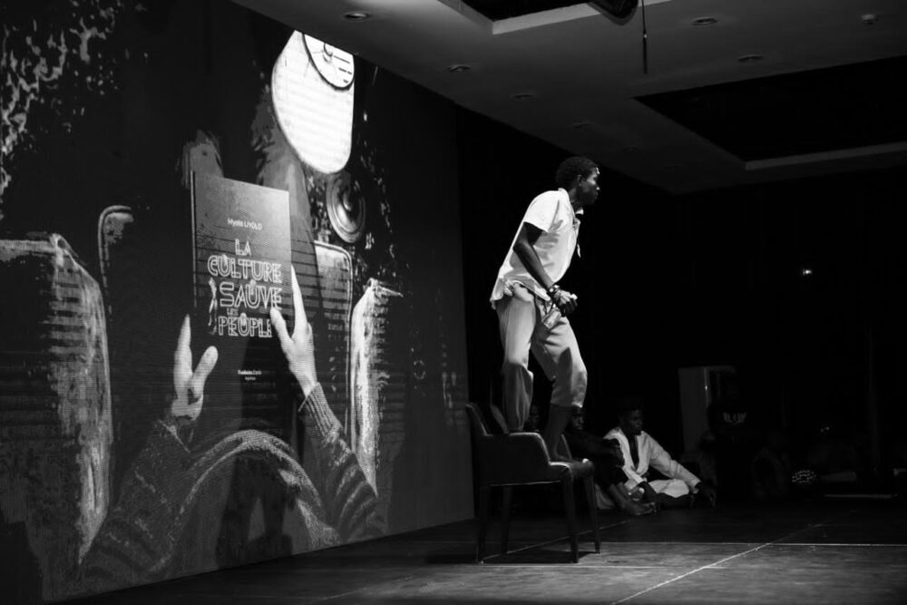 Derrière eux, un écran. Et sur cet écran, d’abord, des visages d’enfants. De vrais enfants. Des enfants de l’Est du Congo, victimes de guerres qu’ils n’ont pas choisies, qui regardaient la caméra et racontaient comment l’art les avait sauvés. Pas métaphoriquement. Littéralement sauvés. Ces témoignages réels, bruts, insoutenables de beauté et de douleur mêlées, ont posé le socle moral de toute la soirée. Avant de parler de culture comme concept, Myoto Liyolo nous a montré la culture comme acte de survie, incarnée dans des corps d’enfants qui avaient traversé l’enfer.
