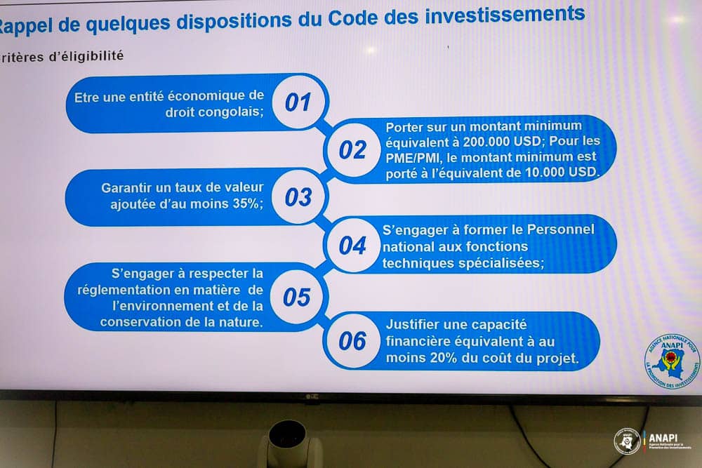 Dans son mot d’ouverture, le Directeur Général Adjoint de l’ANAPI, M. Evariste KATSHIENDA MUANDA, a insisté sur la nécessité pour les entreprises agréées de se conformer notamment aux dispositions des articles 31 et 32 du Code des Investissements.