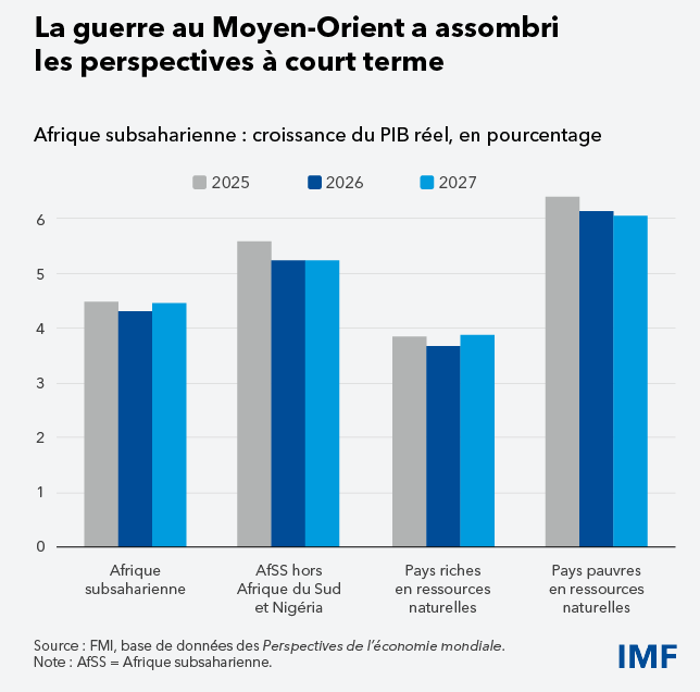 L’optimisme qui régnait au début de l’année 2026 n’était pas infondé : il avait été acquis au prix d’années de réformes difficiles, mais nécessaires. Aujourd’hui, les répercussions de la guerre au Moyen-Orient mettent à l’épreuve ces progrès, mais elles ne doivent pas les effacer. Les décideurs africains ont prouvé leur capacité à obtenir des résultats sous pression. Les choix qu’ils font aujourd’hui, qu’il s’agisse de maintenir le cap en matière d’inflation, de protéger les plus vulnérables contre les effets les plus graves du choc ou de résister à la tentation d’abandonner des réformes qui les ont menés jusque-là, détermineront si ces progrès durement acquis s’inscriront dans la durée. La mission de la communauté internationale consiste à soutenir cet effort. Mais l’audace et la détermination qu’exige la situation doivent émaner de la région elle-même.