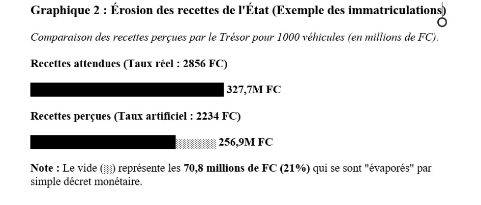 - Au taux “populiste” actuel (2 272,9023 FC) : Le Trésor encaisse 261 383 764,5 FC.