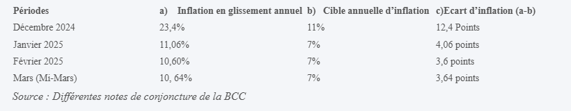 En réalité, dans le cas spécifique de la RDC, le taux directeur est un levier puissant pour lutter contre l’inflation et non pour impulser la croissance. Depuis la restauration de l’option de flexibilité et de positivité du taux d’intérêt directeur, l’inflation évolue à la baisse : 23,4% en 2023, 12,2% en 2024 et une cible visée à 7% en 2025.