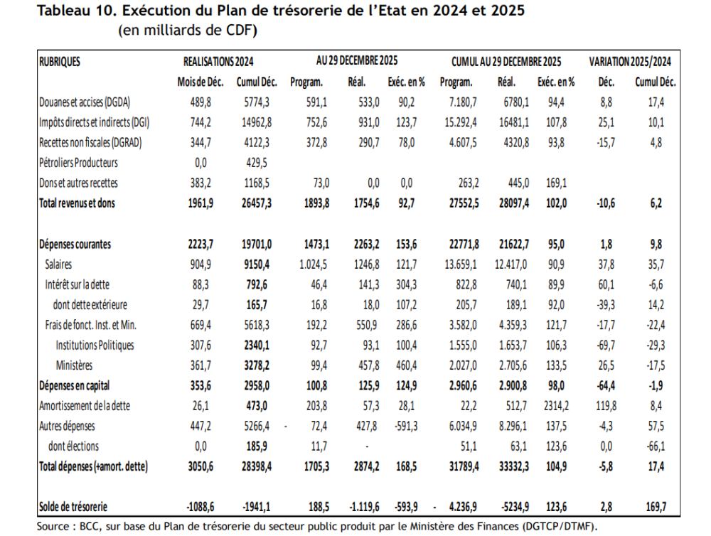 A (RE) Lire : RDC : explosion étrange des dépenses de fonctionnement des institutions et des ministères en ce début de l’année 2026, la BCC évalue à 531 millions USD consommés en trois semaines en janvier