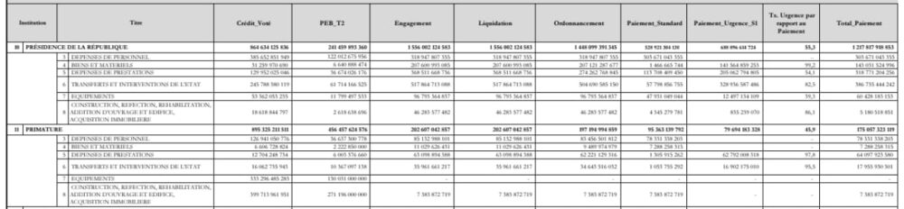Les dépenses de fonctionnement de la Primature accusent un taux de dépassement budgétaire de 409% au cours du premier semestre 2025.