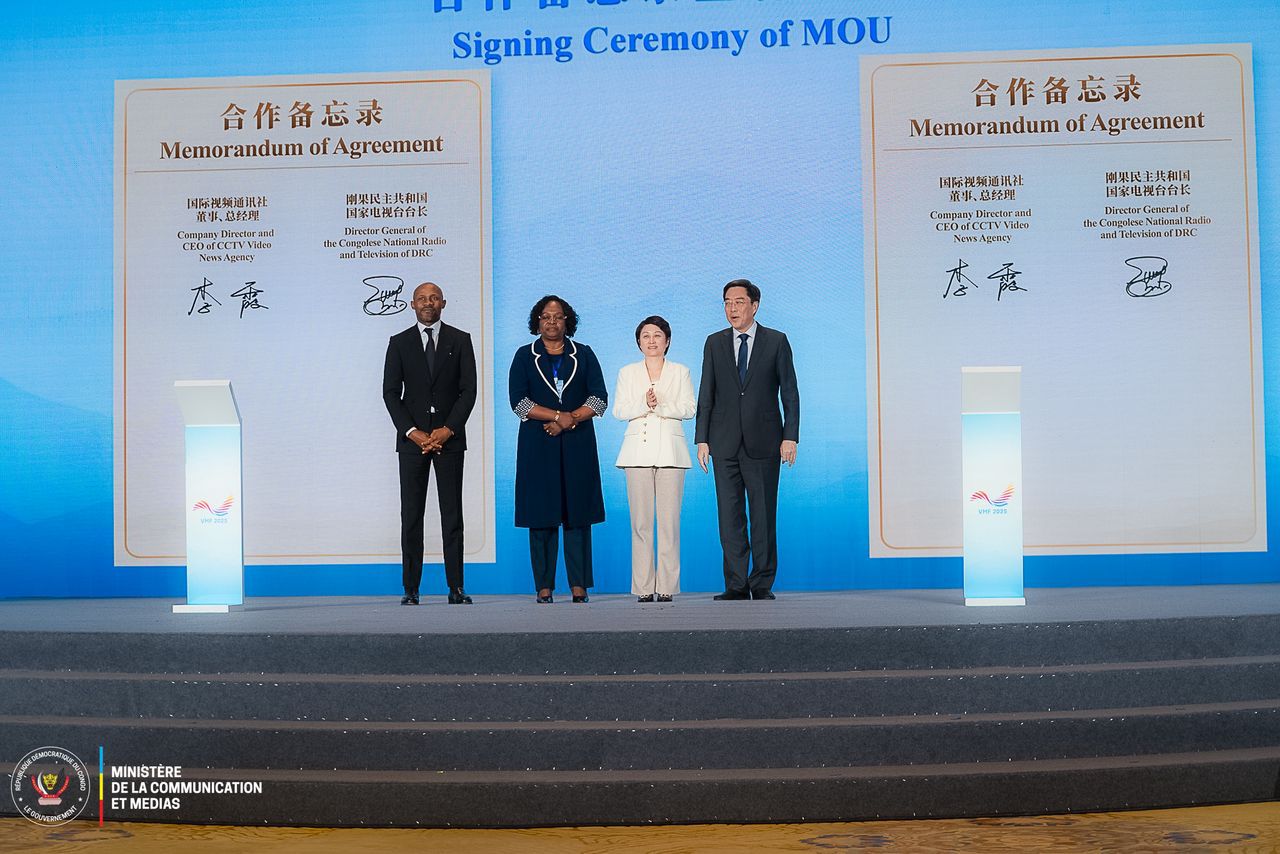 La journée du jeudi 6 novembre, lors du « Global South Media Partners Mechanism Inauguration Meeting and the 13th Global Video Media Forum », a également été marquée par la signature d’un mémorandum d’entente entre la Radio Télévision Nationale Congolaise (RTNC) et CCTV+ Video News Agency, filiale du China Media Group.